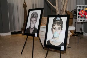 Among the pieces were photographs by artist Miriam Calzada, several Giclée on canvas of iconic figures such as Marilyn Monroe, David Bowie, and Queen Elizabeth II by German painter Michael Moebius, among others.